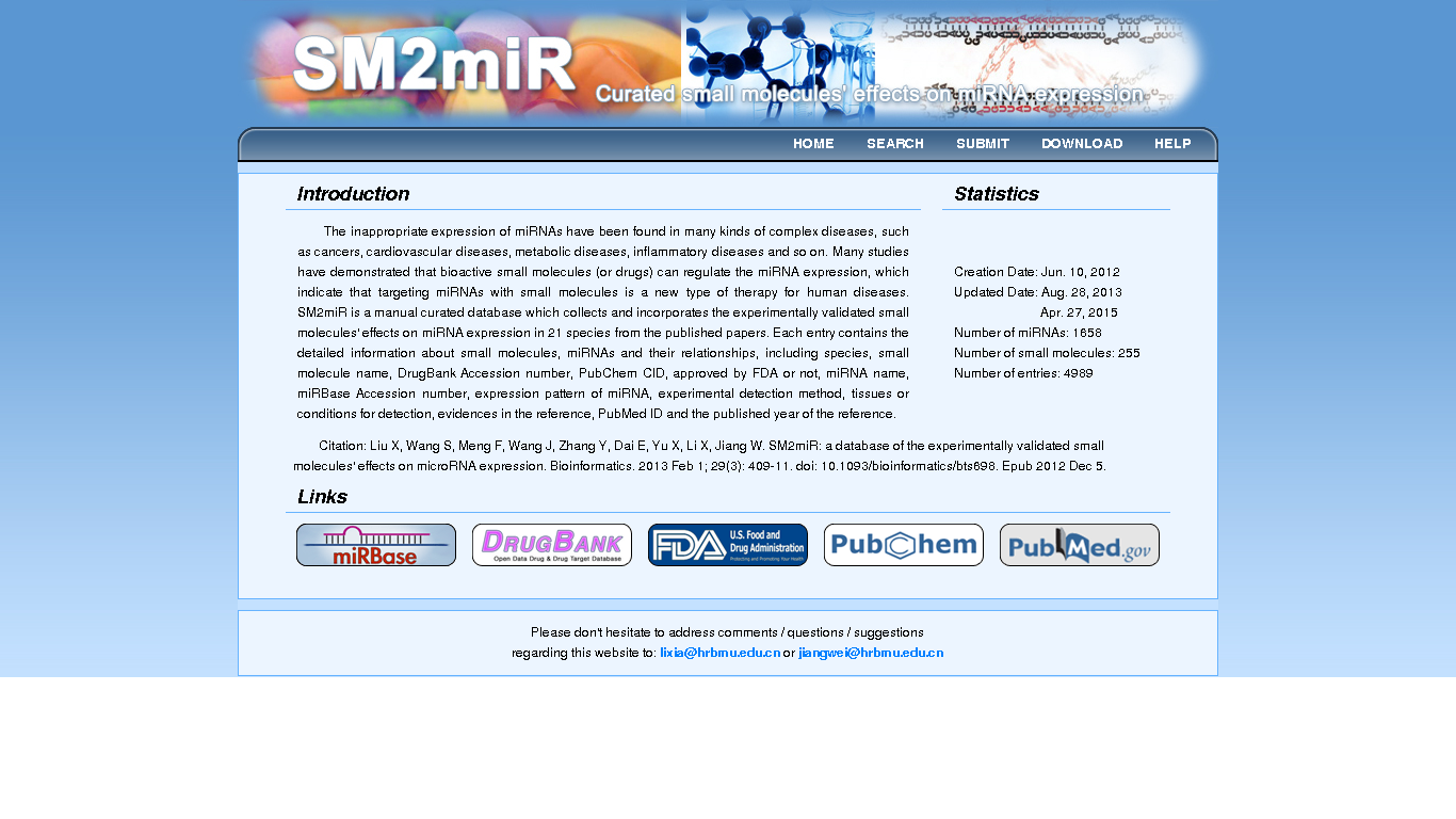 SM2miR: a database of the experimentally validated small molecules’ effects on microRNA expression