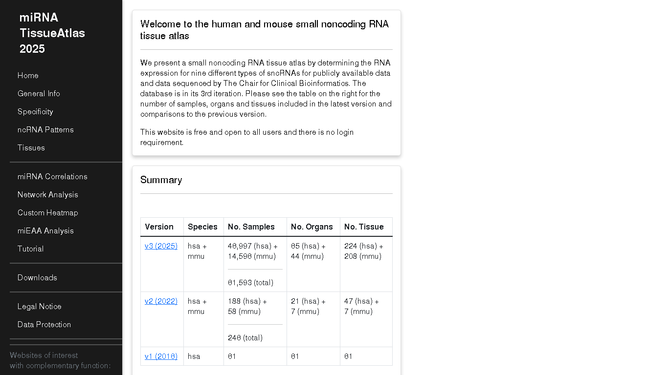 small noncoding RNA tissue atlas determining the RNA expression for nine different types of sncRNAs.