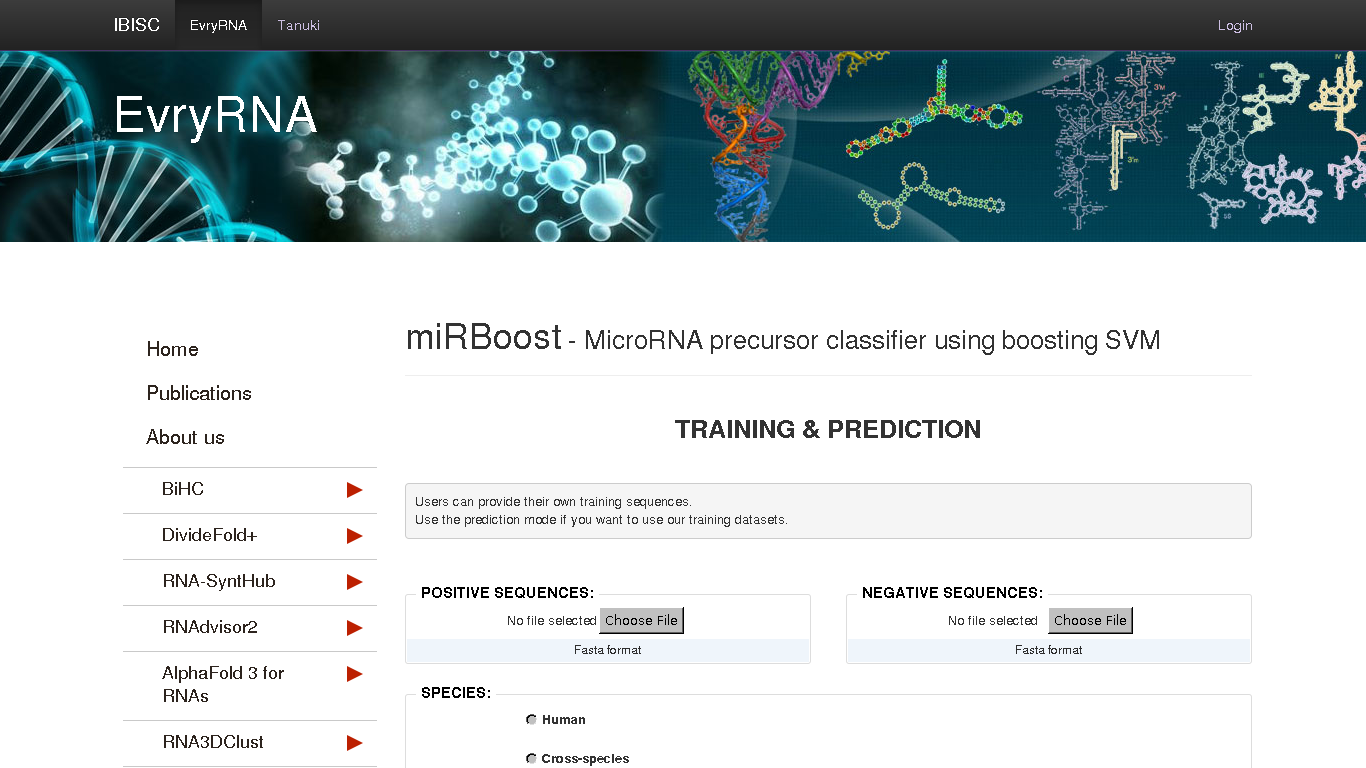 An ensemble method for microRNA precursor clasification that uses a boosting technique with support vector machine components to deal with imbalanced training data. Classification is performed following a feature selection on 187 novel and existing features. miRBoost provides a good compromise between prediction efficiency and execution time.